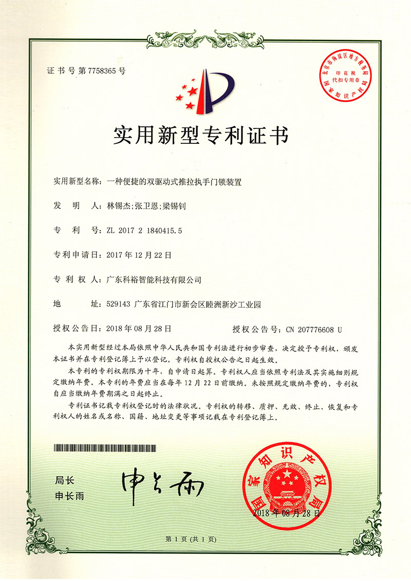 廣東科裕智能科技公司是知名的智能門鎖生產(chǎn)企業(yè),中國指紋鎖,智能鎖、酒店門鎖等產(chǎn)品擁有良好信譽(yù)口碑