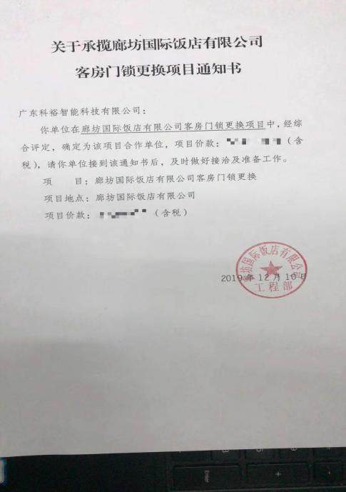 科裕新款酒店鎖上市不過才兩個月,便憑借非凡的實力斬獲兩家星級酒店的項目!