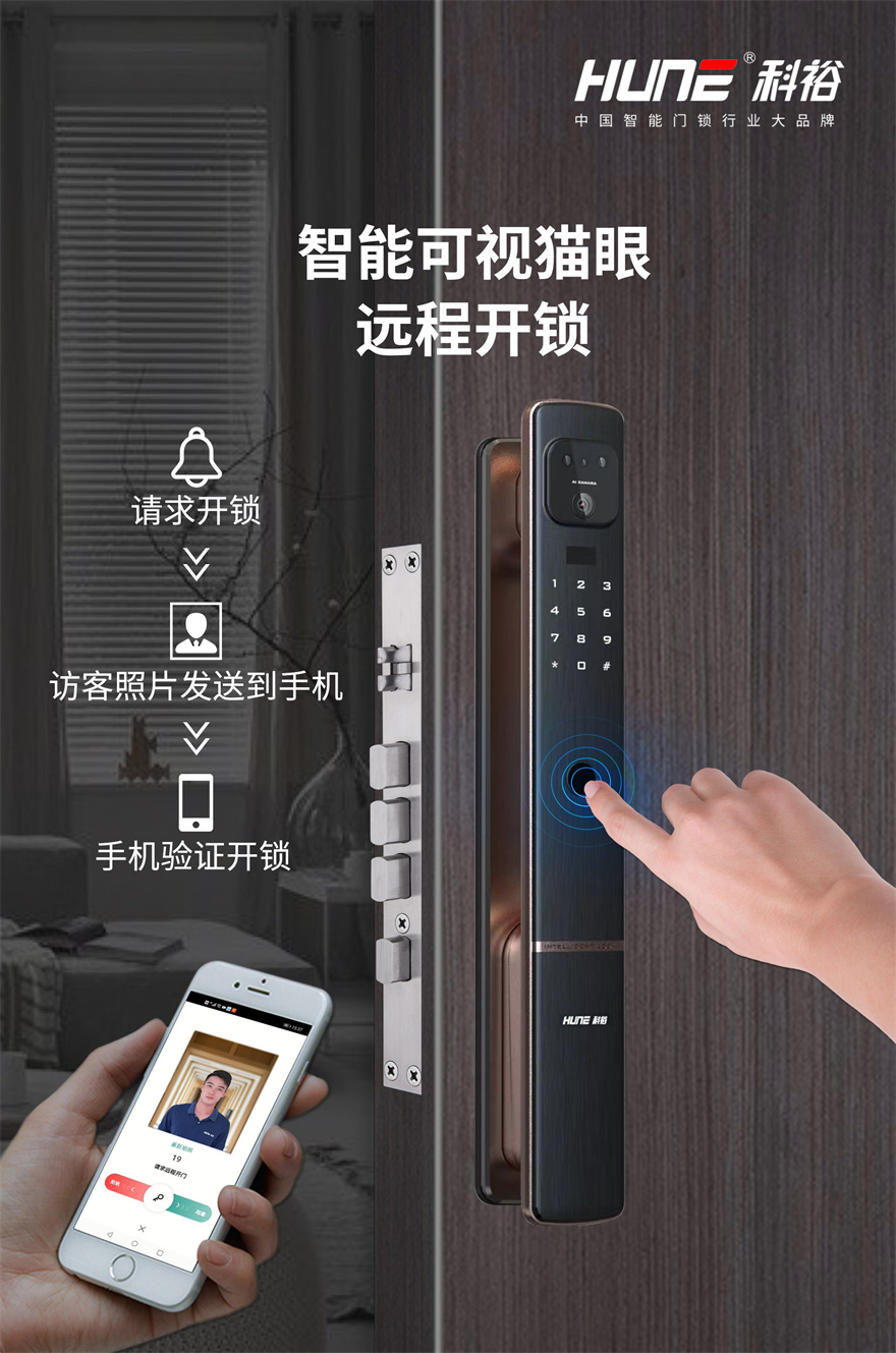標(biāo)配科裕云管家,離家在外時(shí),可以遠(yuǎn)程實(shí)時(shí)通過手機(jī)了解家門口動(dòng)態(tài),甚至能夠進(jìn)行連接控制,進(jìn)行手機(jī)開門、臨時(shí)密碼設(shè)置、開門記錄查詢以及接收徘徊報(bào)警、防撬報(bào)警、門鎖異常報(bào)警等信息,即使再遠(yuǎn)的距離也能夠守護(hù)居家安全。