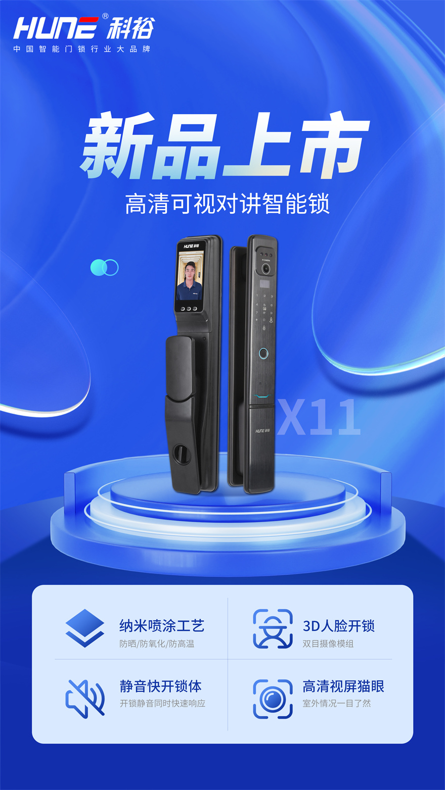 現(xiàn)在,科裕更是用超前的科技與藝術(shù)眼光推出X11系列智能門鎖,人臉識(shí)別+可視對(duì)講,號(hào)稱“看得見的守護(hù)”,讓大家出門更方便,進(jìn)門更輕松,居家更安全!產(chǎn)品創(chuàng)新的同時(shí)模式也創(chuàng)新,是科裕未來的發(fā)展方向。