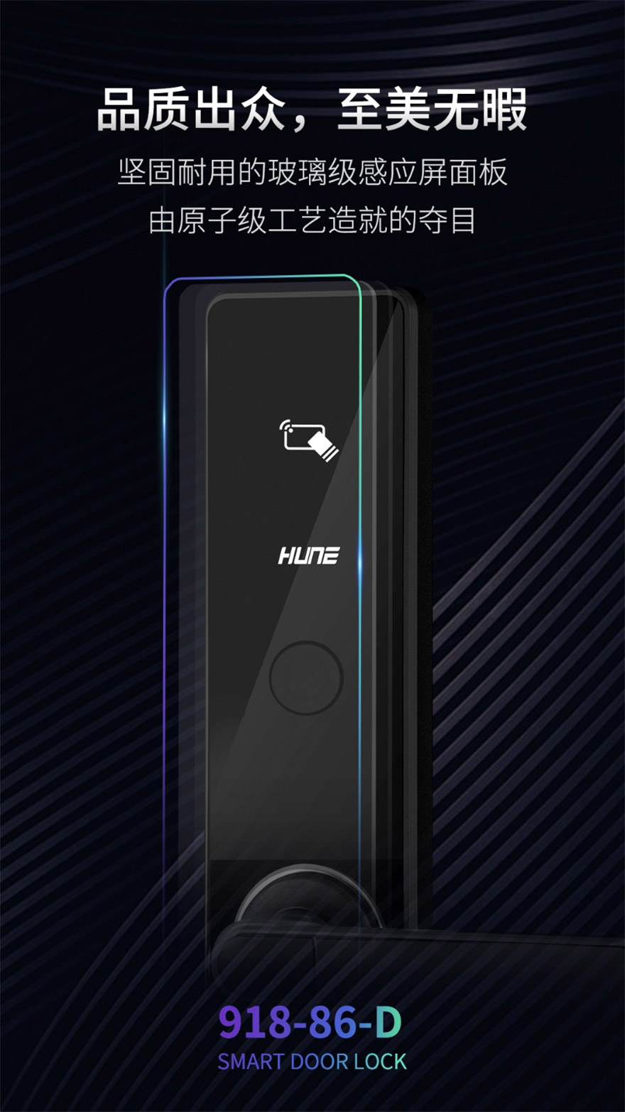 3、外觀簡約時尚,設(shè)計層次豐富,金屬與亞克力的搭配更具格調(diào),人機工程學(xué)一握開把手設(shè)計,使用舒適,符合時代潮流雙軸套游離把手有效防松動,,多種開鎖方式,可手機遠(yuǎn)程操控, 科技感十足;