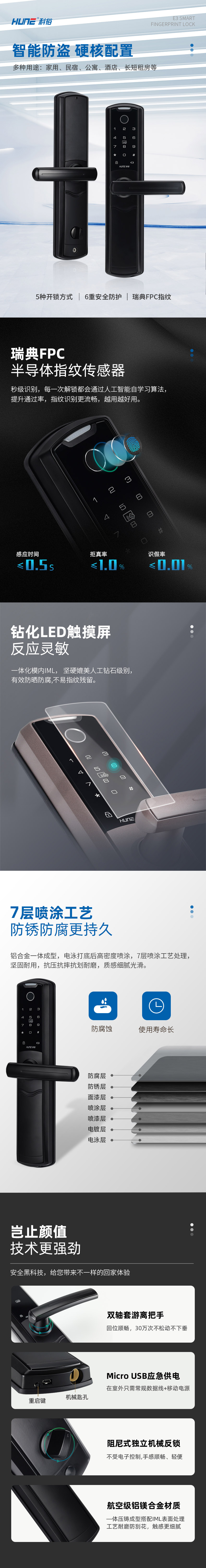 3、外觀簡約時尚,鉆化led屏設計反應靈紋,7層噴涂工藝處理質感細膩,雙軸套把手設計,使用舒適,多種開鎖方式,可手機遠程操控,科技感十足;