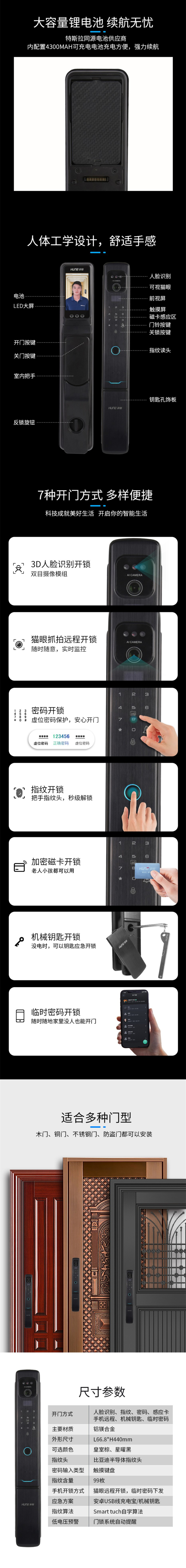 開門方式:人臉識別,指紋,密碼,感應卡,機械鑰匙,微信小程序,手機APP