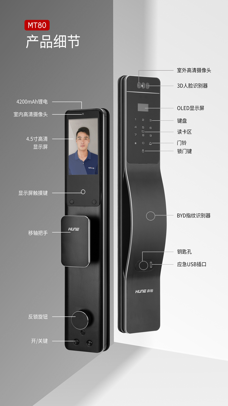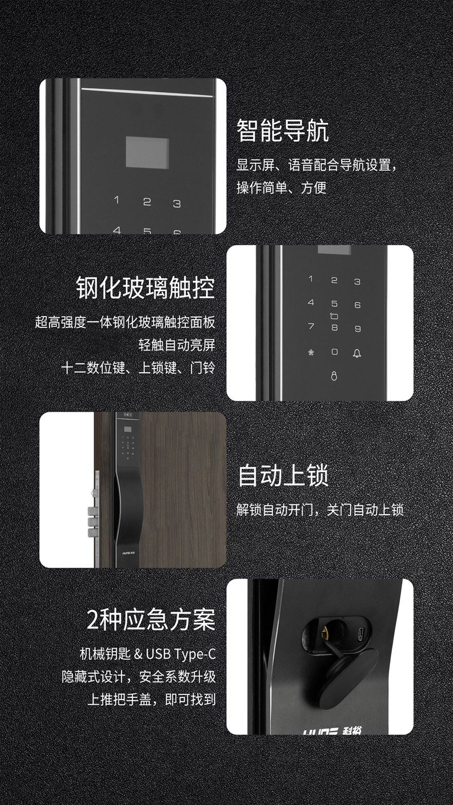 應(yīng)急開鎖:機械鑰匙,Type-C接口