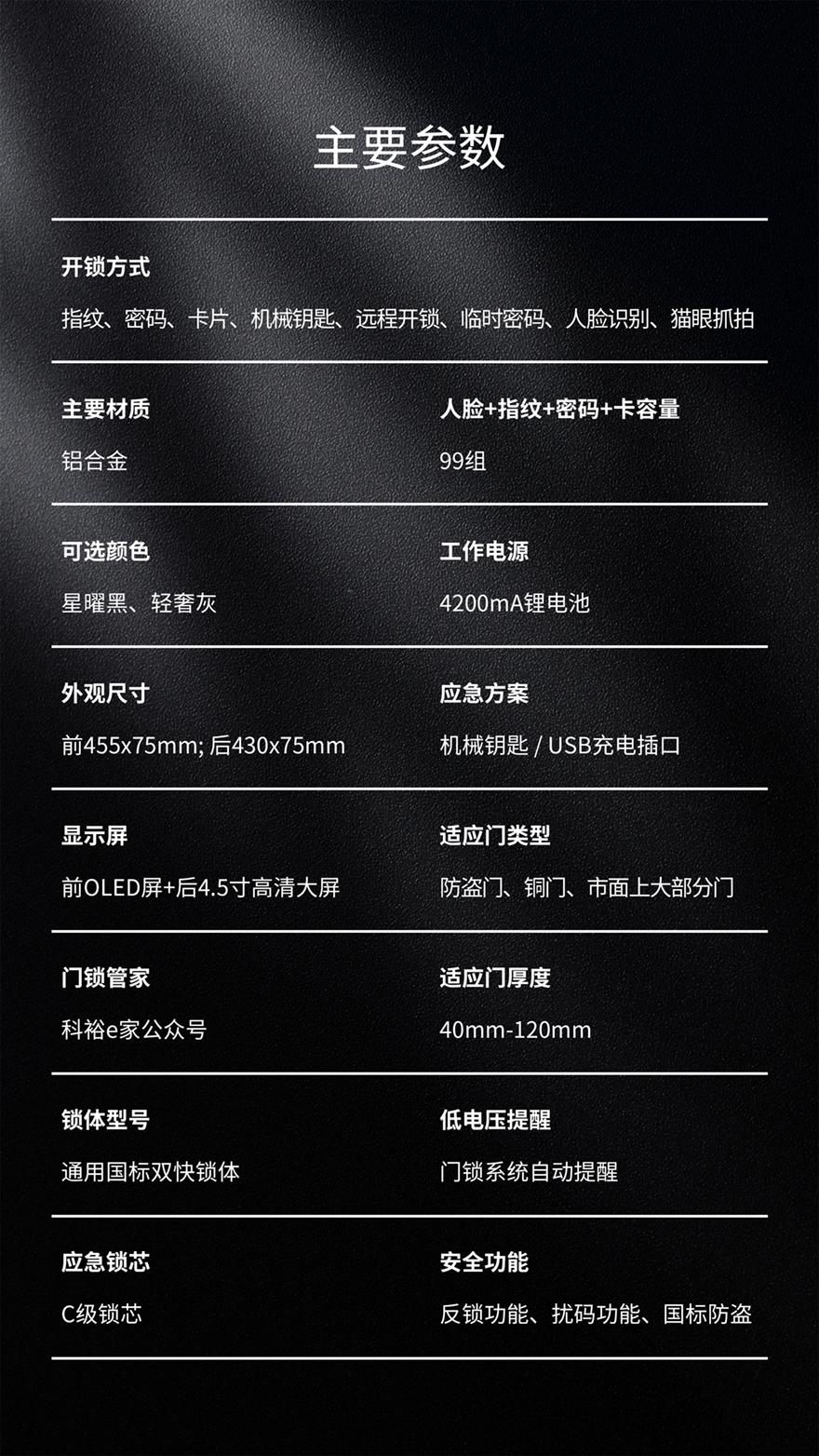用戶容量:人臉99張,指紋/密碼/卡99組