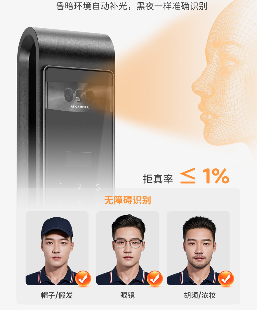 用戶容量:人臉99張,指紋/密碼/卡99組